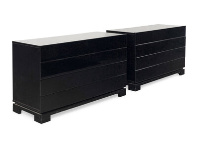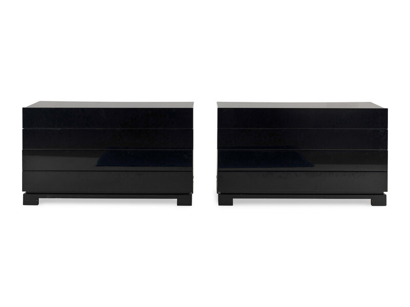 A Pair of Contemporary Black Lacquered Commodes