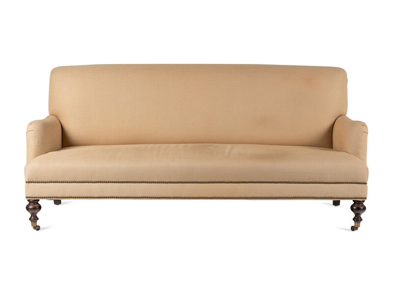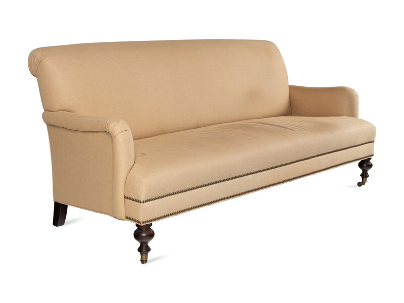 A Contemporary Nailhead-Studded Linen Sofa