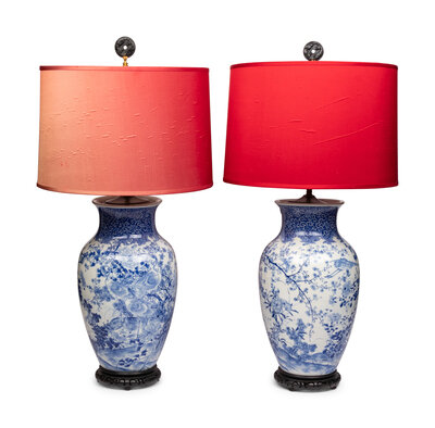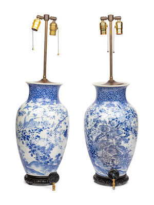 A Pair of Japanese Porcelain Vases Mounted as Lamps