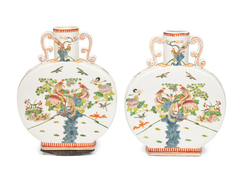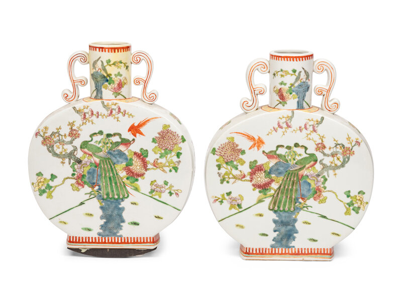 A Pair of Chinese Export Polychrome Decorated Porcelain Moon Flasks