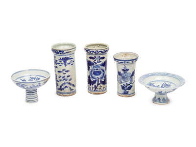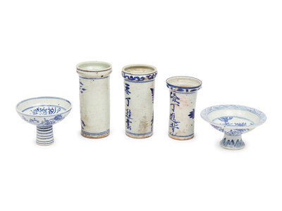 Five Chinese Blue and White Porcelain Articles