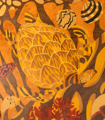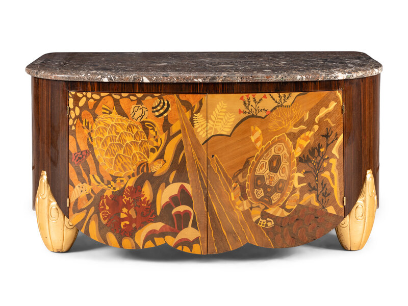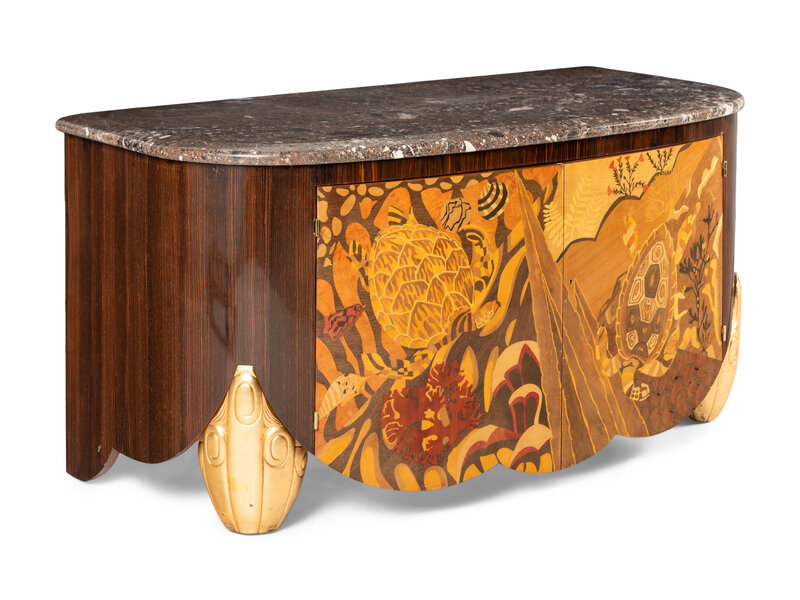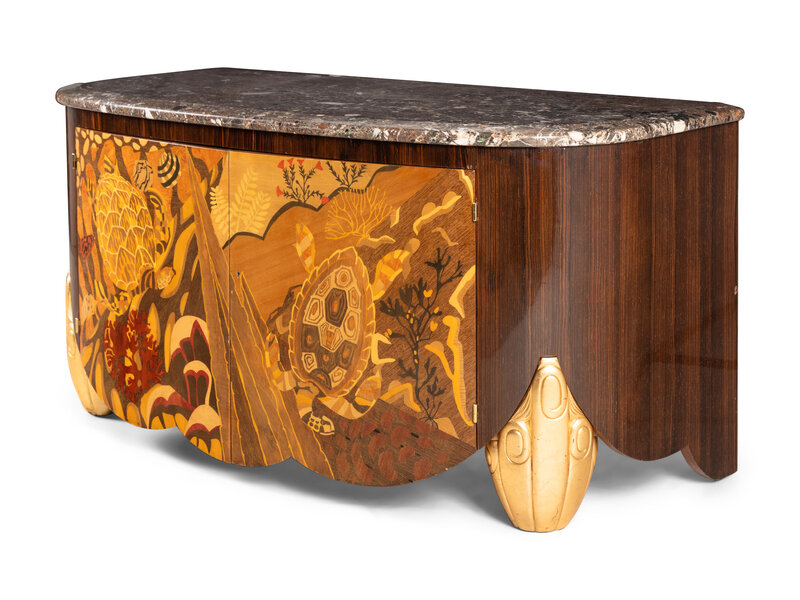An Art Deco Stryle Marquetry Marble-Top Commode