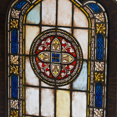 Framed window with Gothic arch