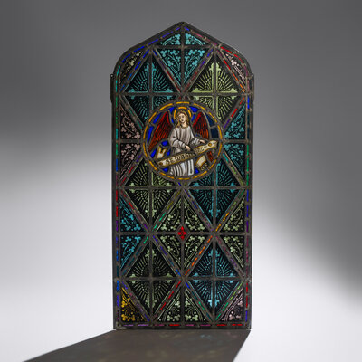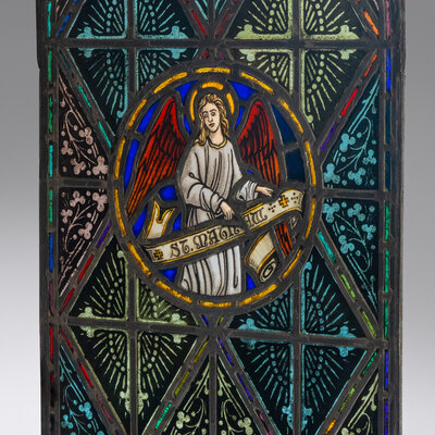 Window with Gothic-arch and painted St. Matthew