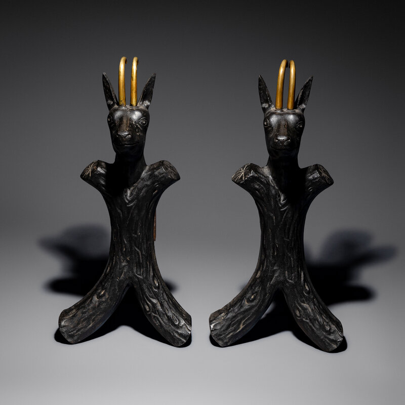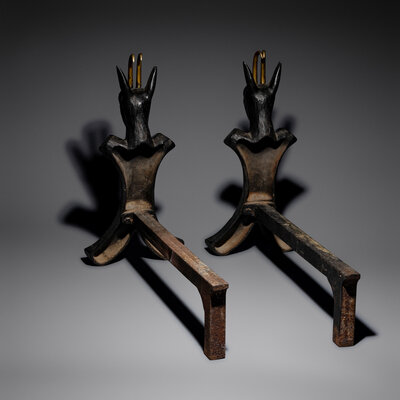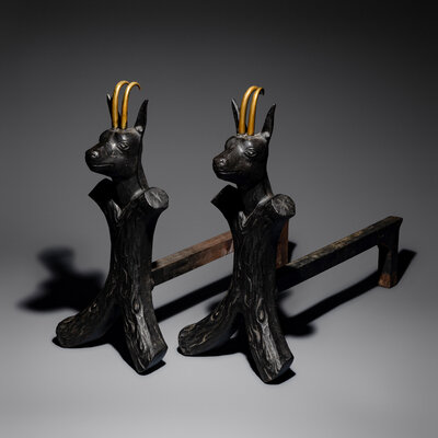 Ibex andirons, pair