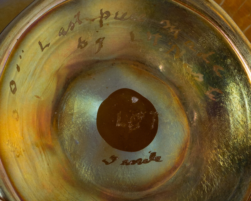 Notable Signature, etched to underside '$100 Last piece made by L. C. Nash' and 'LCT, Favrile'
