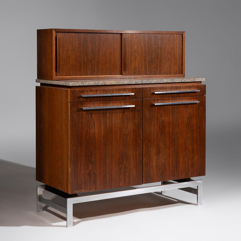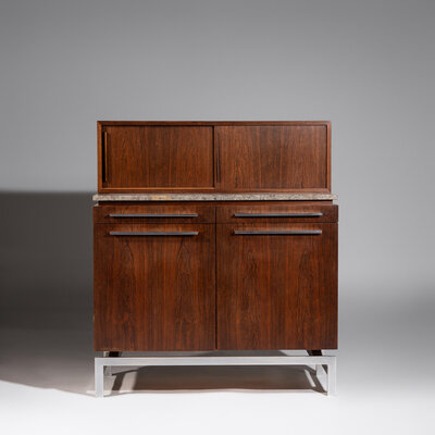 rosewood, chromed metal, marble
