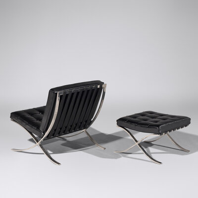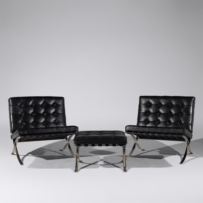 Pair of Barcelona Chairs with Ottoman for Knoll
