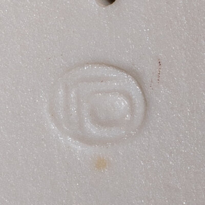 impressed artist's mark to underside and hand-written title and orientation stickers