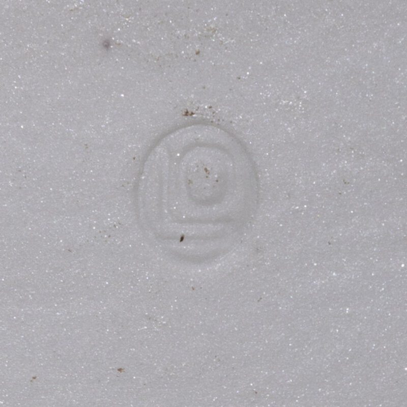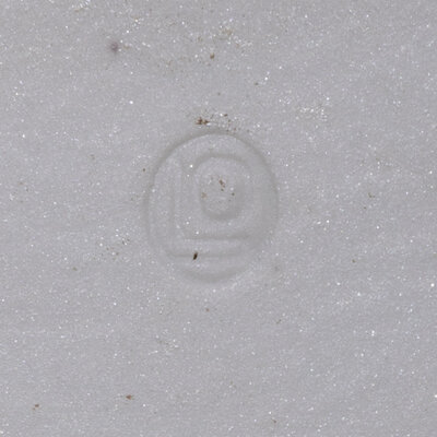 Impressed artist's mark to underside and hand-written title and orientation stickers.
