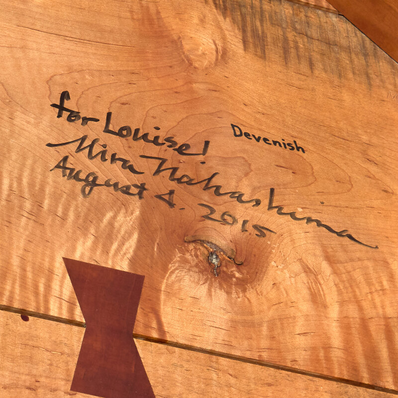 signed to underside 'Devenish', and 'for Louise! Mira Nakashima/August 4, 2015'