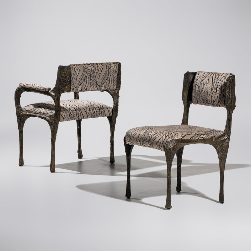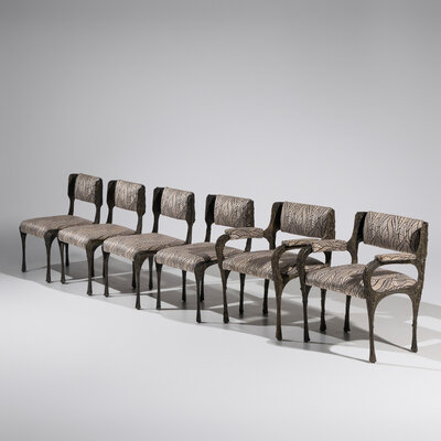 Sculpted Bronze chairs, set of 6, c. 1970