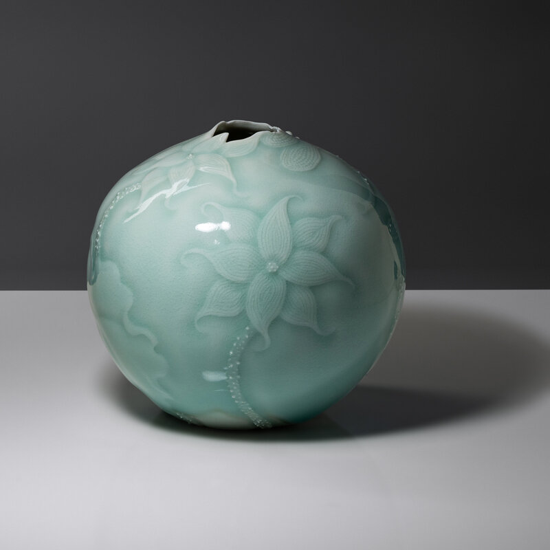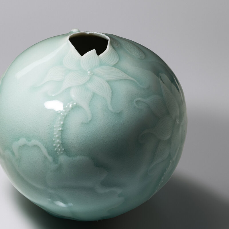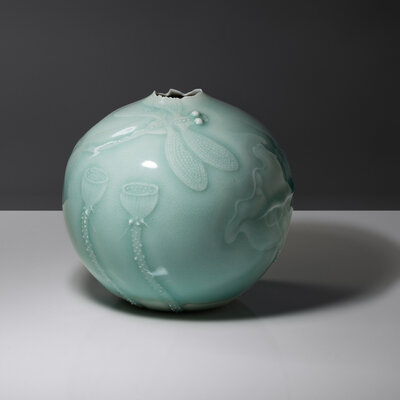 Celadon-glazed vase with dragonfly and flowers, 2014