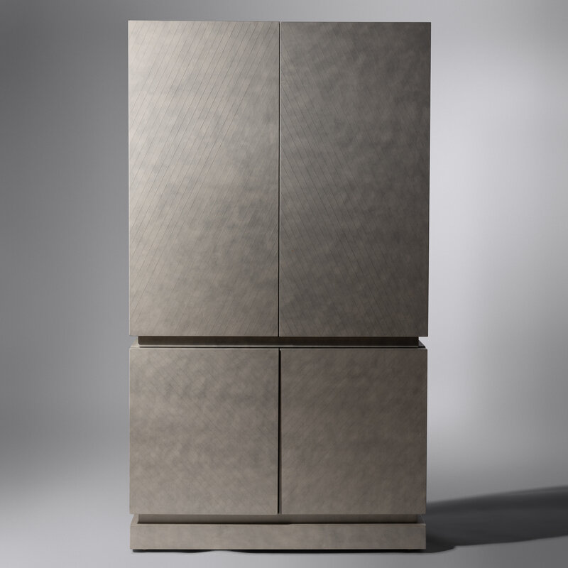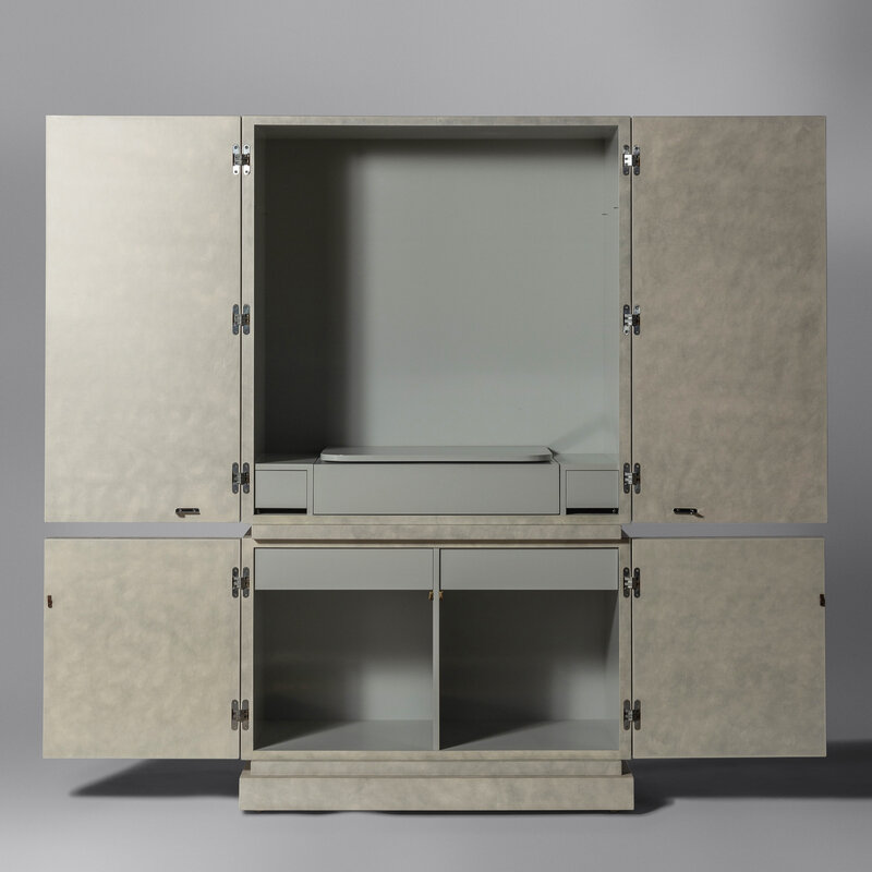 Custom cabinet in scored leather finish, 1987