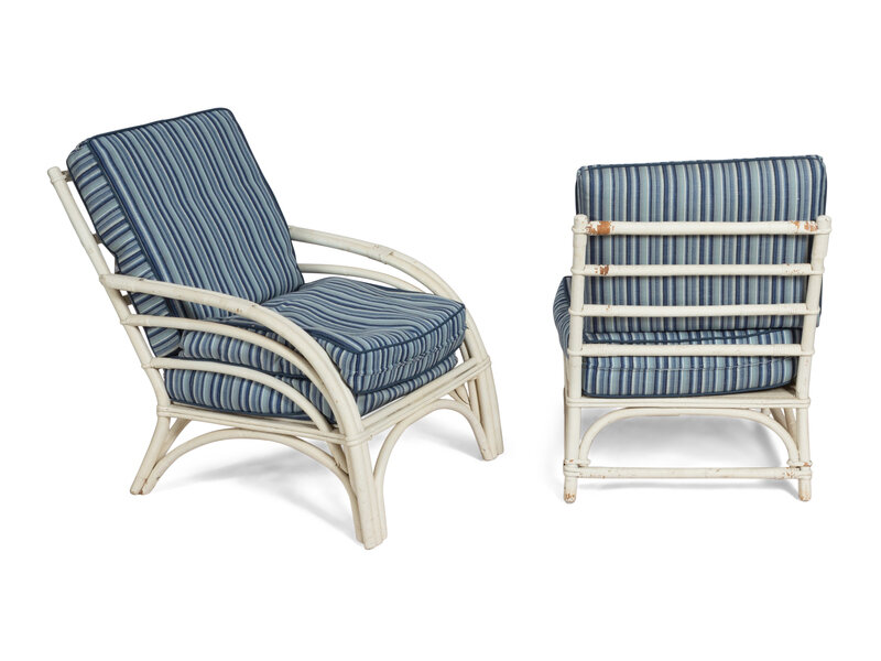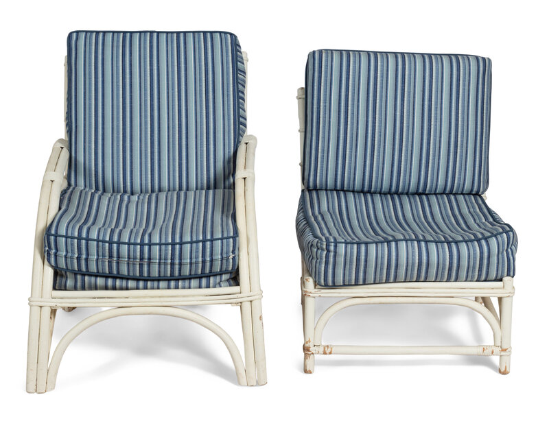 A Group of Five White Rattan Chairs