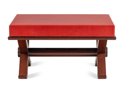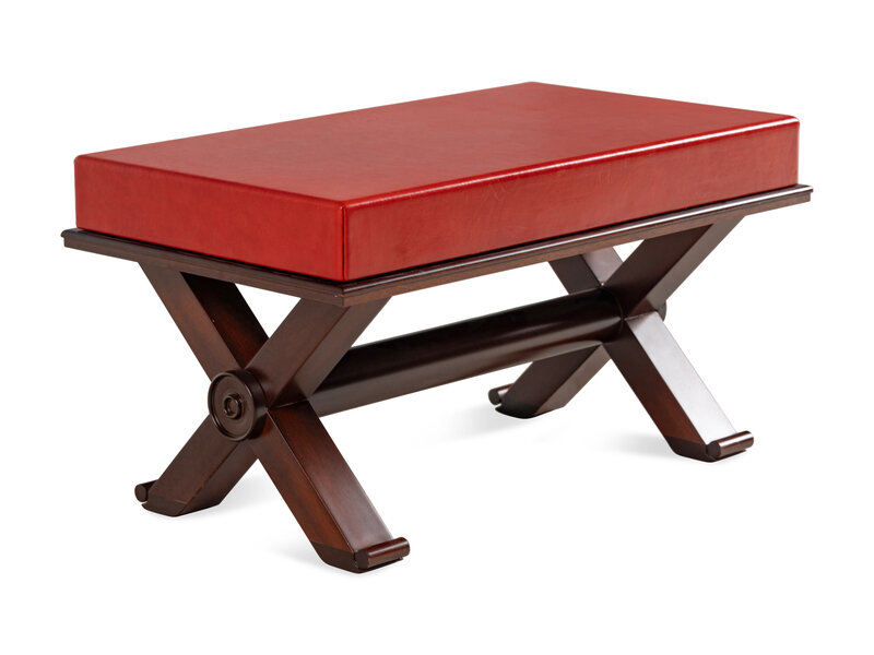 A Custom Red Leather-Upholstered Gilt Metal Stool