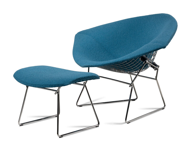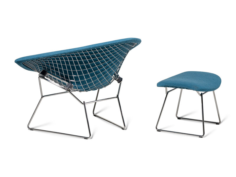 A Bertoia Diamond Chair and Ottoman