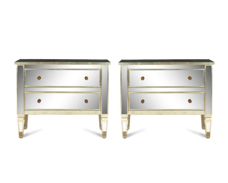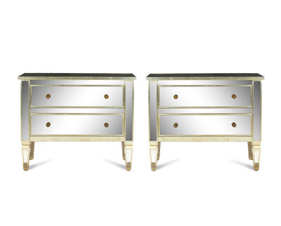 A Pair of Silver Gilt Mirror-Veneered Bedside Commodes