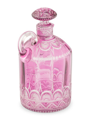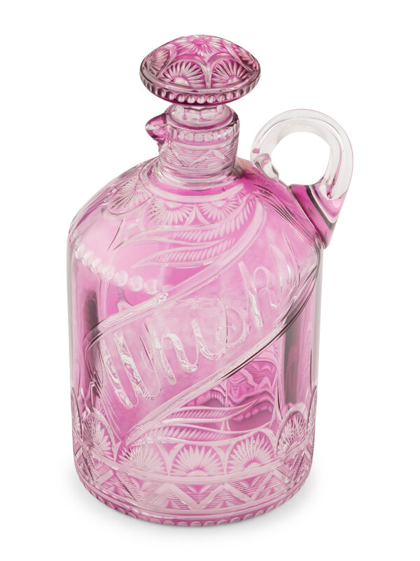 An American Cut-to-Clear Amethyst Glass Whiskey Bottle