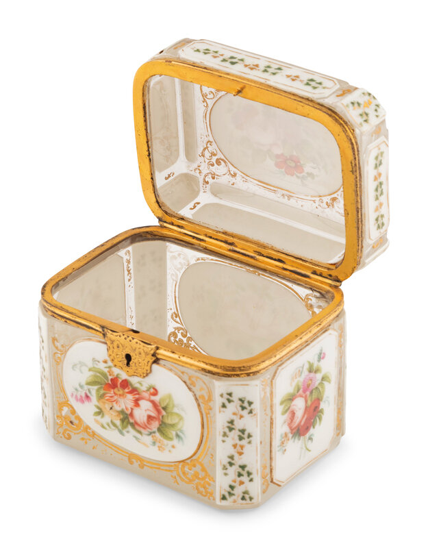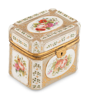A Continental Parcel Gilt and Enameled Cut Glass Table Casket