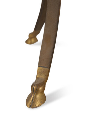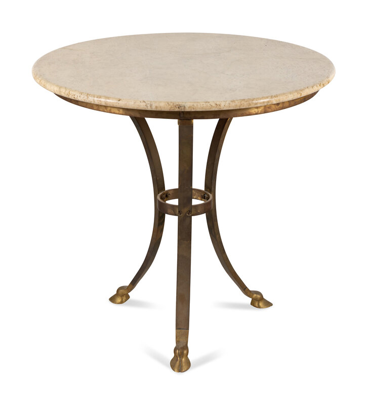 A Steel and Brass Travertine-Top Side Table in the Style of Maison Jansen