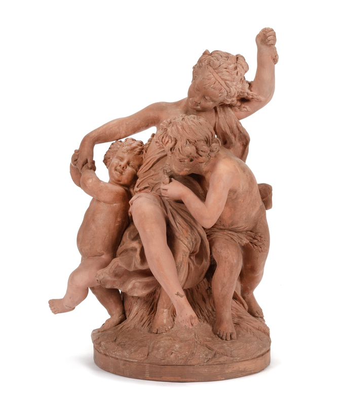 A French Terra Cotta Figural Group Height 25 1/4 inches.