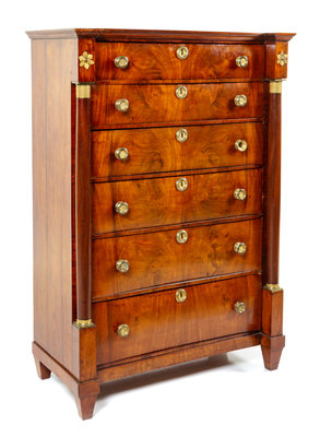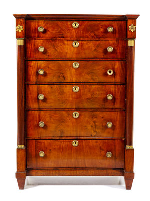 An Empire Style Mahogany Semainier Height 57 x width 39 3/4 x depth 19 inches.