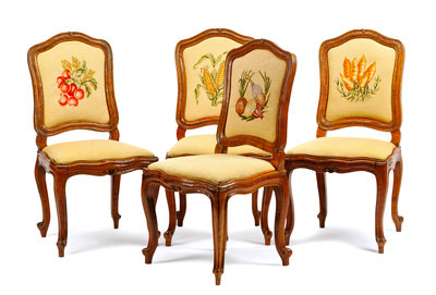 A Set of Four French Provincial Side Chairs Height 39 inches.
