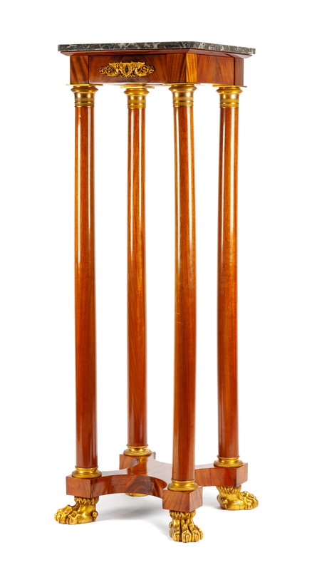 An Empire Style Gilt Bronze Mounted Pedestal Height 63 x width 21 x depth 21 inches.