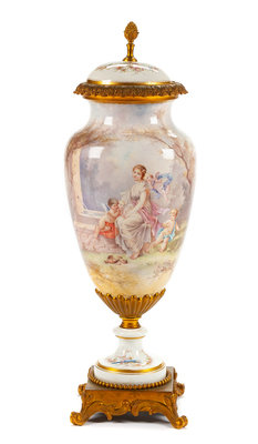 A Sevres Style Gilt Bronze Mounted Porcelain Vase and Cover Height 29 inches.
