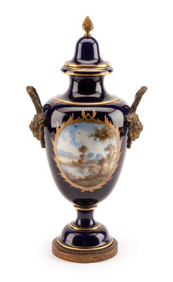 A Sevres Style Gilt Bronze Mounted Porcelain Vase Height 17 3/4 inches.