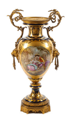 A Sevres Style Gilt Bronze Mounted Porcelain Vase Height 40 inches.
