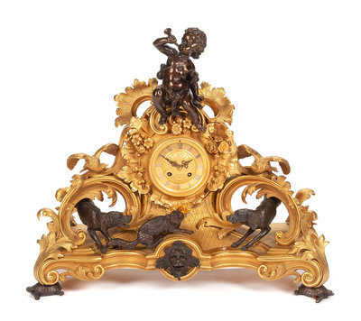 A Napoleon III Gilt and Patinated Bronze Mantel Clock Height 19 x width 22 inches.