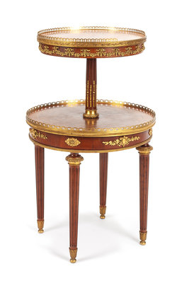 A Napoleon III Gilt Metal Mounted Occasional Table Height 31 1/2 x diameter of larger tier 19 1/2 inches.