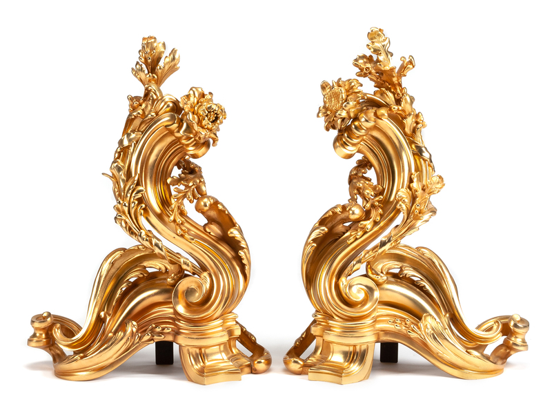 A Pair of Napoleon III Style Gilt Bronze Chenets Height 25 x width 18 1/2 inches.
