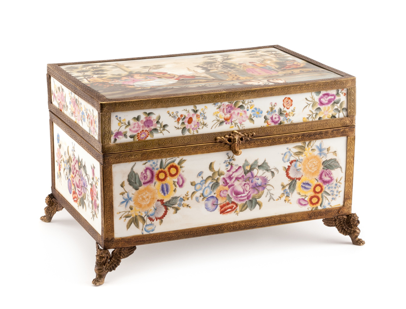 A Sevres Style Gilt Bronze Mounted Porcelain Casket Width 13 inches.