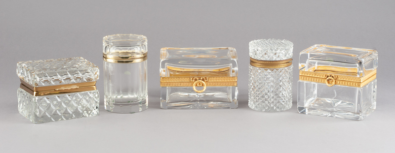 Five French Gilt Bronze Mounted Cut Glass Boxes Width of widest 5 inches.