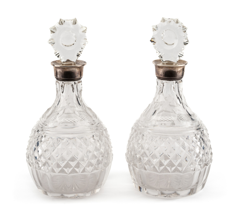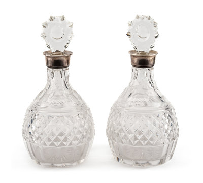 A Pair of French Cut Glass Decanters Height 13 1/2 inches.