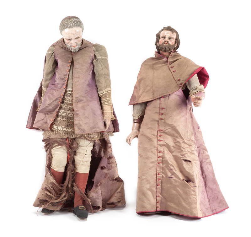 A Pair of Italian Polychromed Figures Height 32 inches.