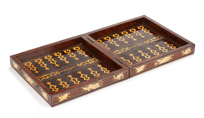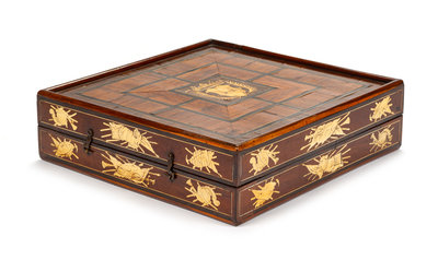 An Italian Marquetry Game Box Width 17 1/4 x depth 17 1/4 inches.