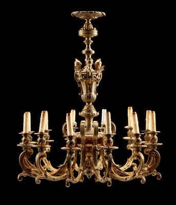 A Regence Style Gilt Bronze Twelve-Light Chandelier Height 33 x diameter 30 inches.