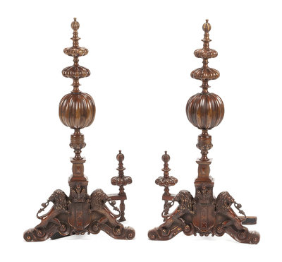 A Pair of Baroque Style Bronze Chenets Height 37 inches.