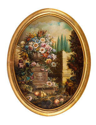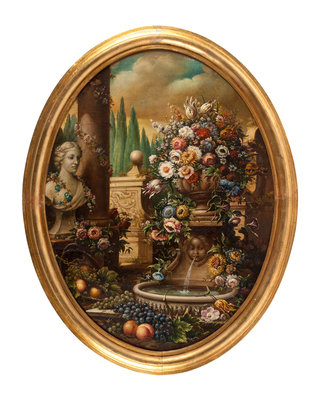 Continental School, (First Quarter 20th Century), Flower-Filled Urns in Garden Settings (two works)