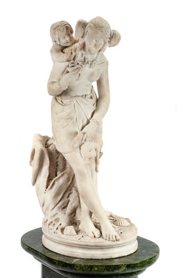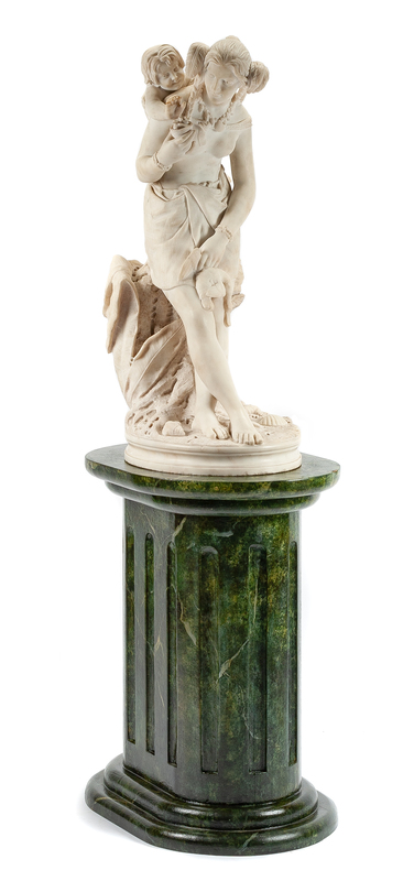 An Italian Marble Figural Group Height of marble 34 inches; height of pedestal 29 inches.