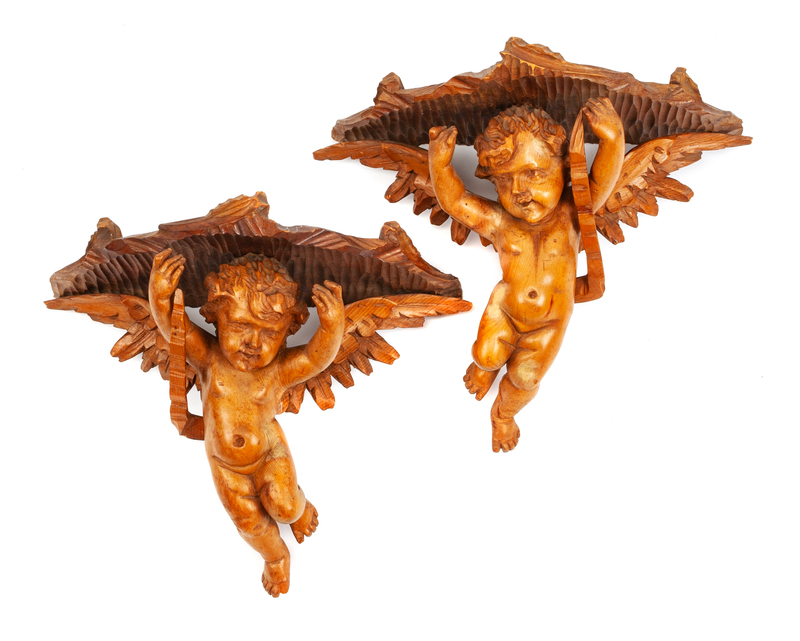 each in the form of a cherub supporting the shaped shelf.