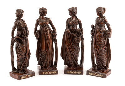 A Set of Four Italian Carved Wood Figural Groups Height 13 inches.