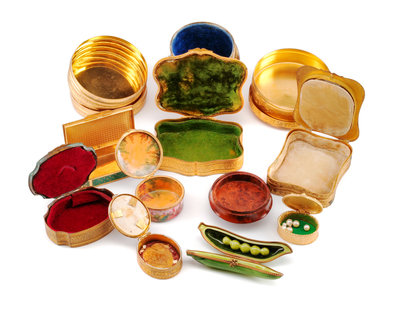A Collection of Continental Trinket Boxes Largest: height 2 1/2 x diameter 4 inches.