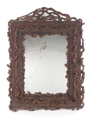 A Continental Burl Root Mirror Height 48 x width 34 1/2 inches.