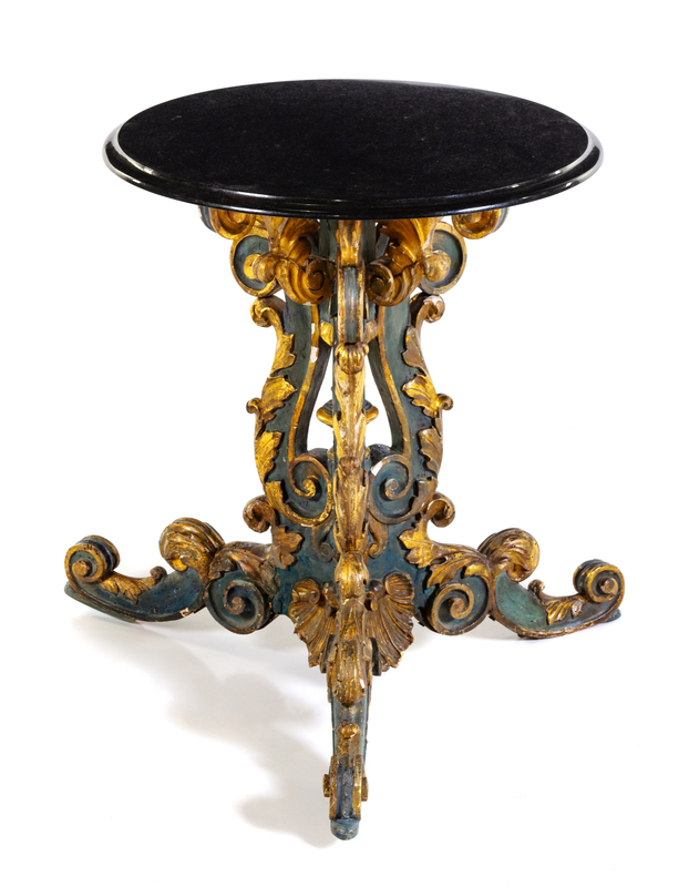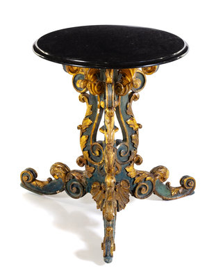 A Venetian Painted and Parcel Gilt Table Base Height 28 1/4 x diameter of top 23 1/4 inches.