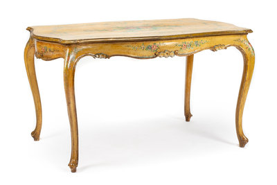 A Venetian Painted Center Table Height 30 x width 54 x depth 34 1/4 inches.